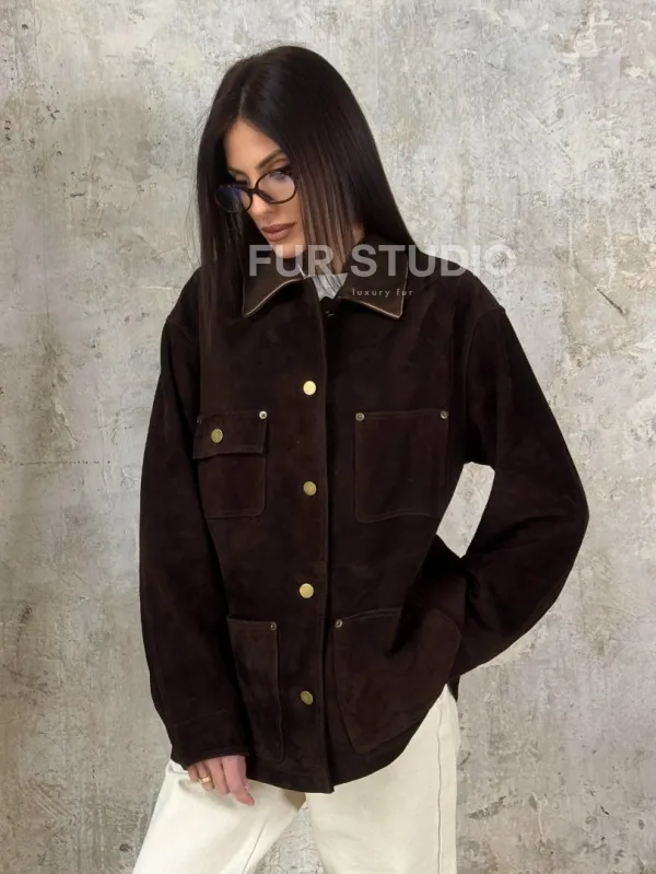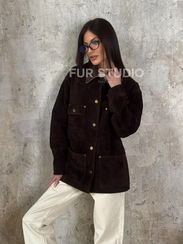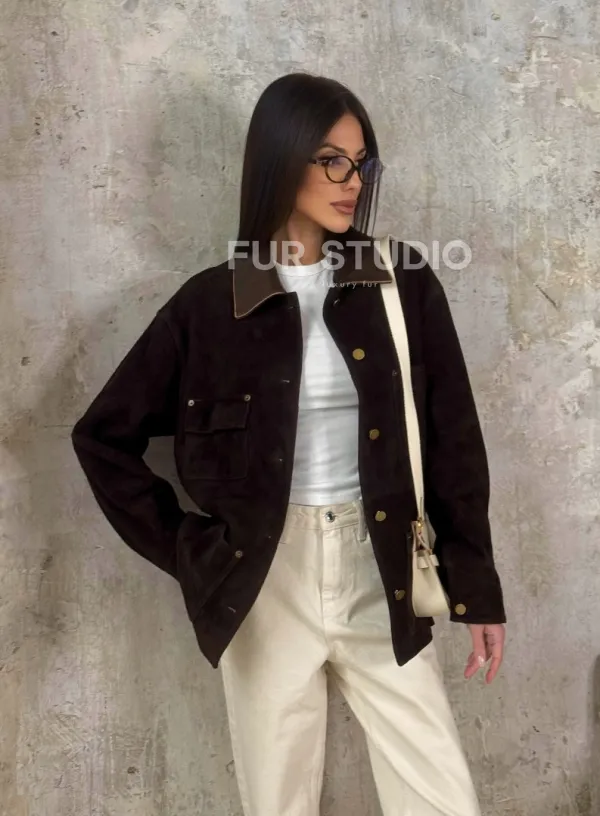 Тренд весна - 2025 "Рабочая куртка" из натуральной замши доступна для покупки в нашем шоуруме Furs Studio в , где также предоставляется удобная доставка во все города России.