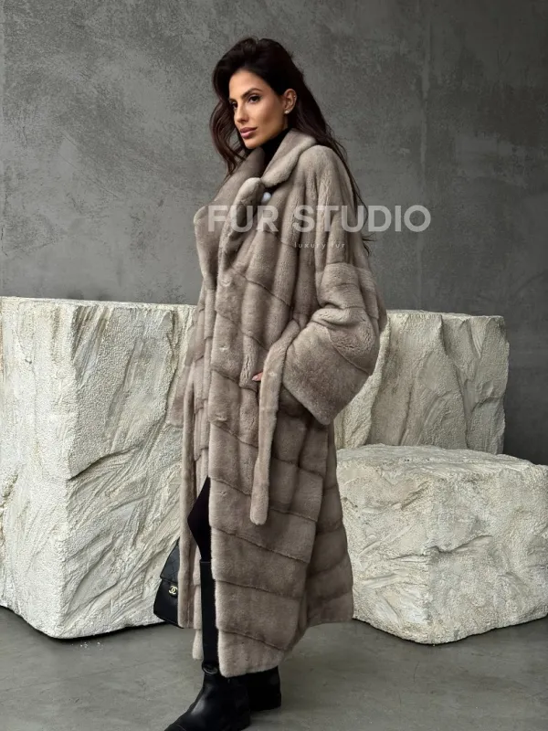 Удлинённая норковая шуба с поясом доступна для покупки в нашем шоуруме Furs Studio в . У нас так же есть доставка во все города России. Добавьте немного роскоши в свой гардероб с этой шубой, которая будет служить вам многие годы.
