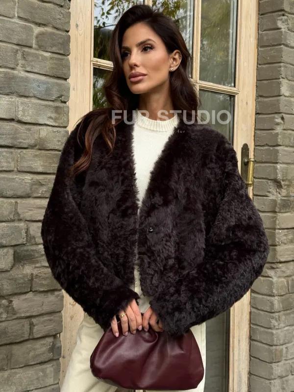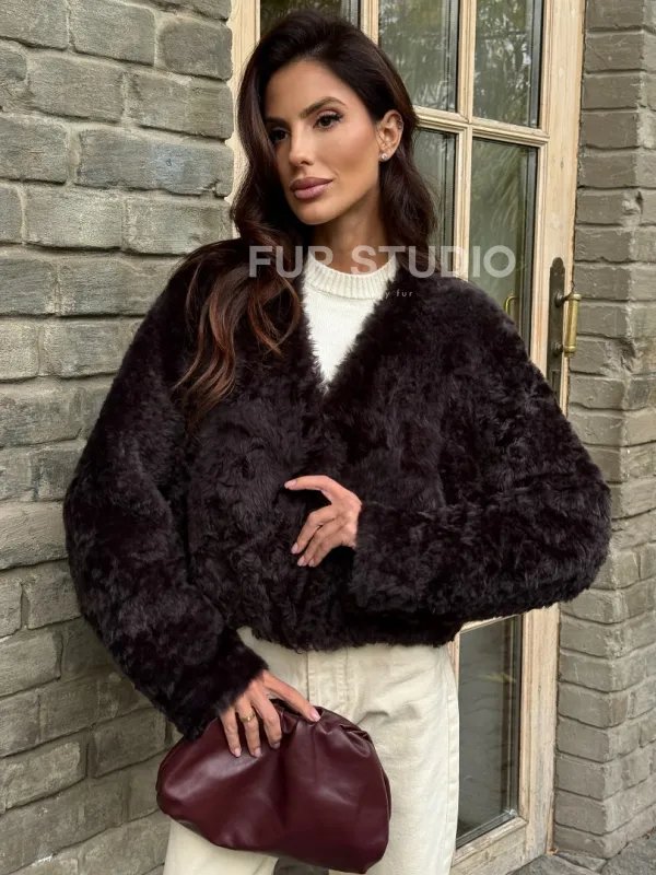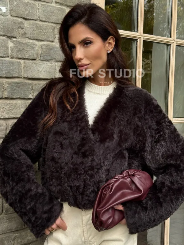 Укороченная шуба из овчины калган. Модель предлагается в размерах от 42 до 48. Оптимальная длина моделей 45-50 см подчеркивает линии вашей фигуры. Эта дубленка станет неотъемлемой частью гардероба для тех, кто предпочитает роскошь и утонченность натуральной кожи.