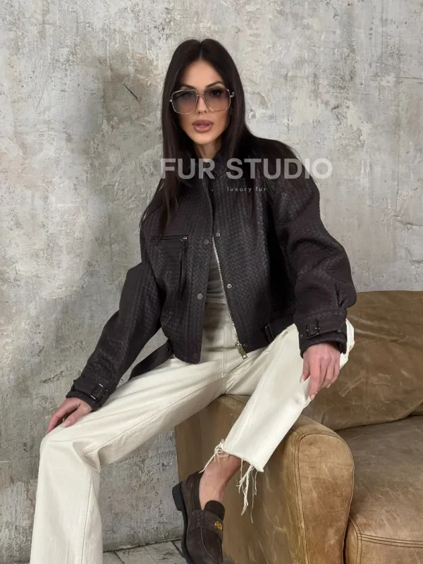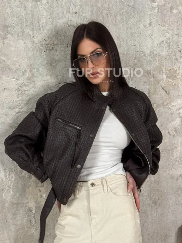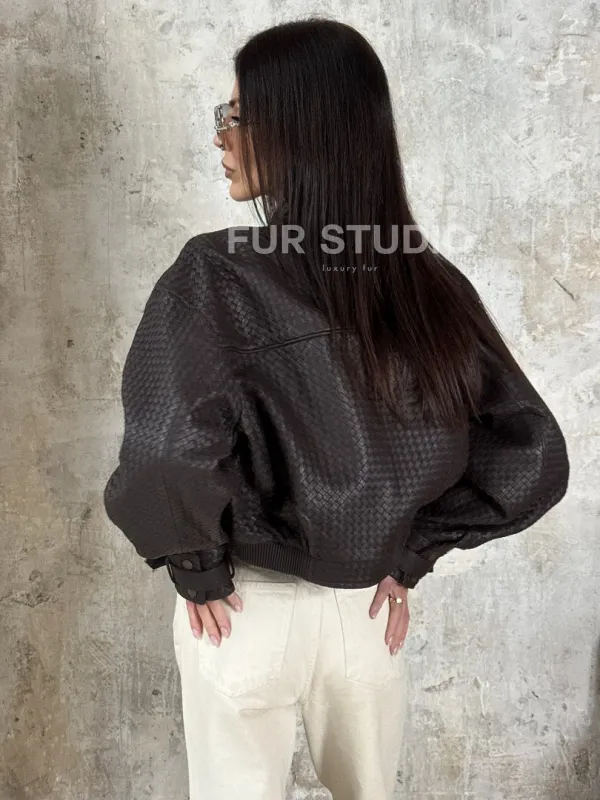 Женский бомбер из натуральной плетёной кожи 101701