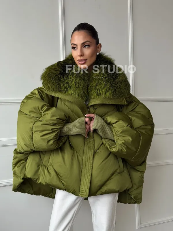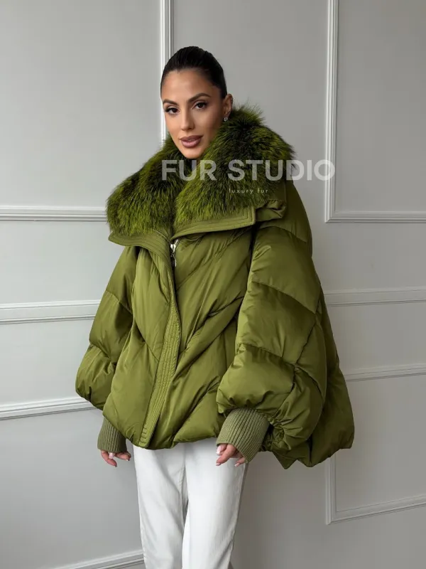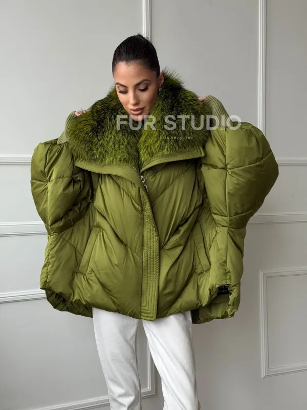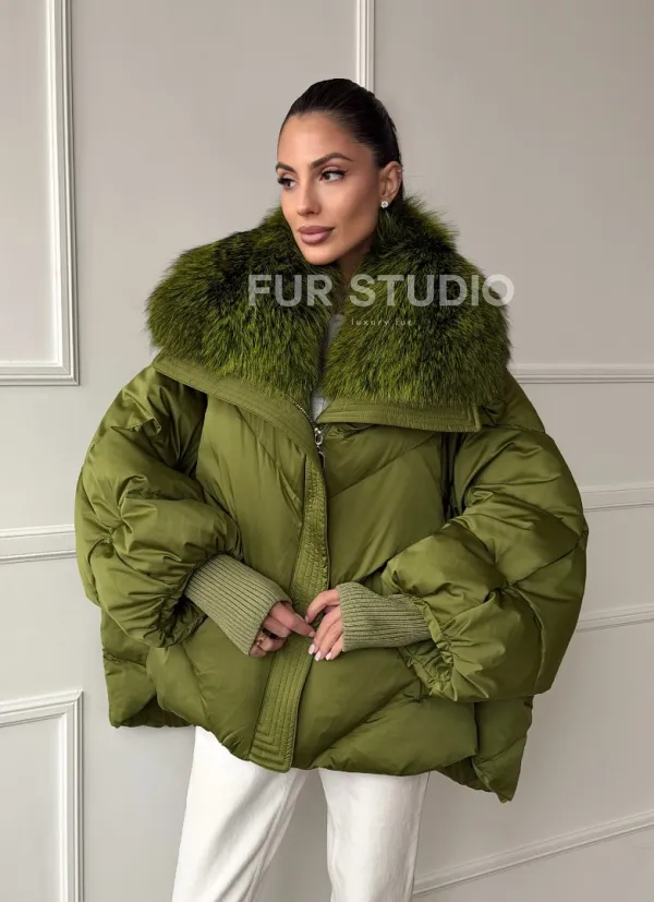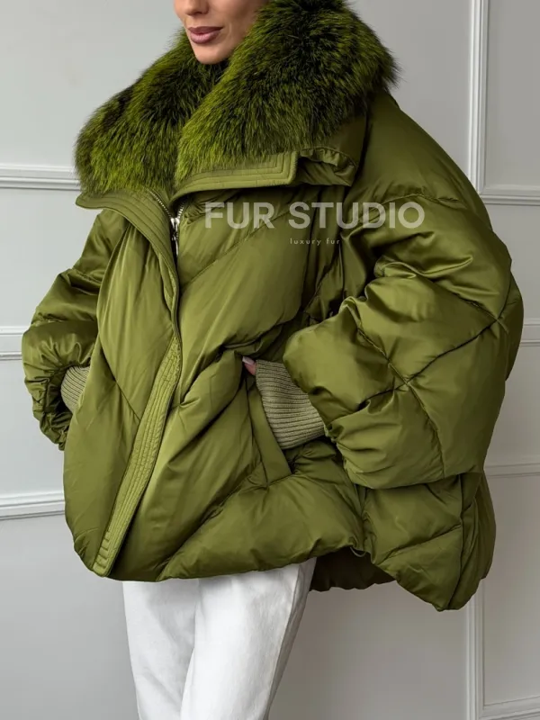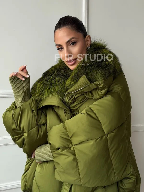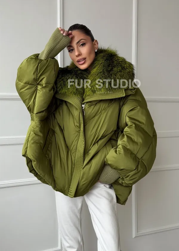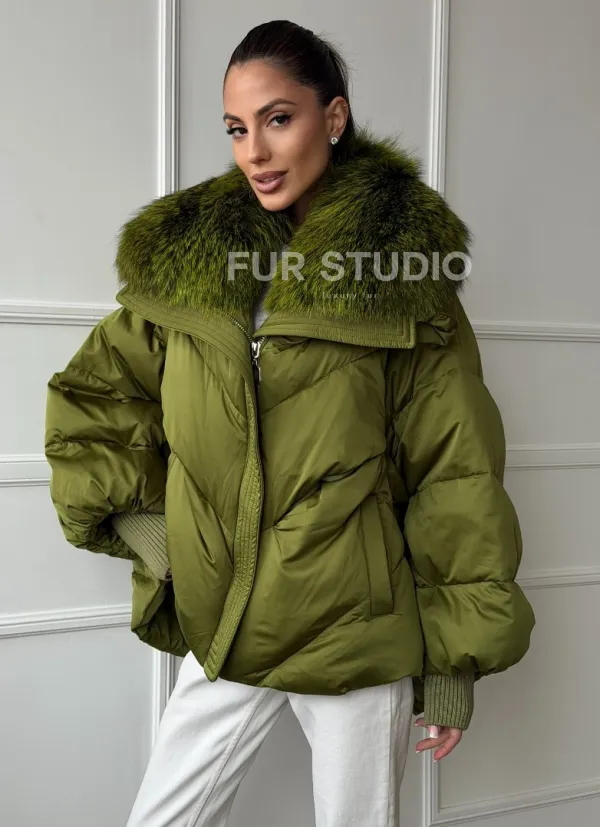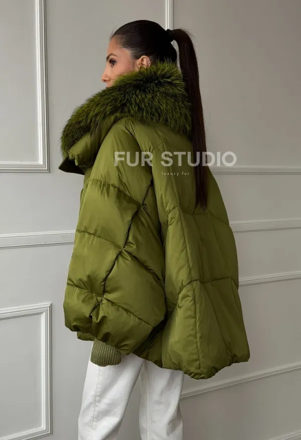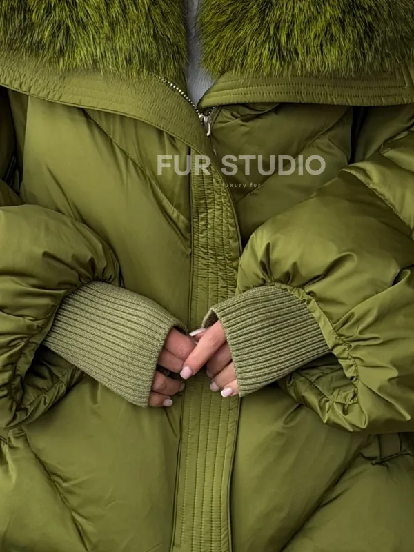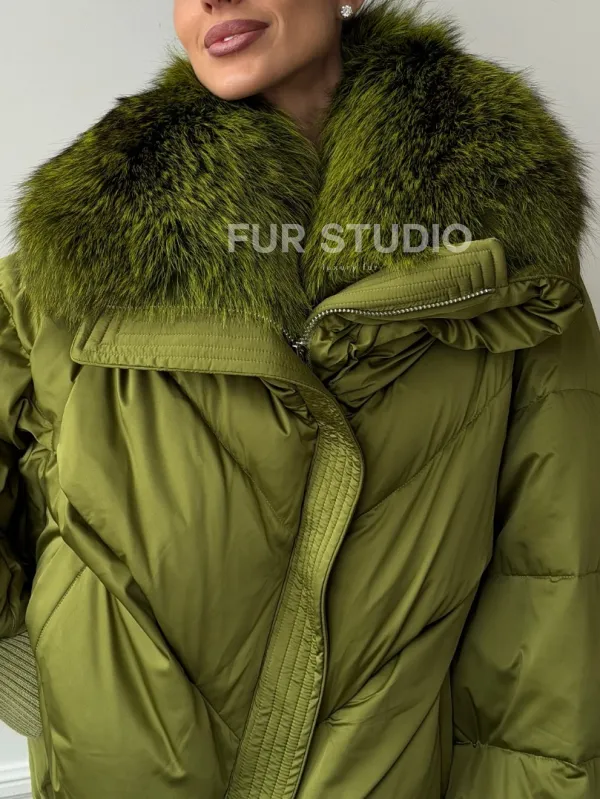 Женский стеганный пуховик с воротником чернобурки 102669
