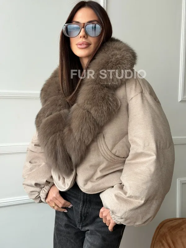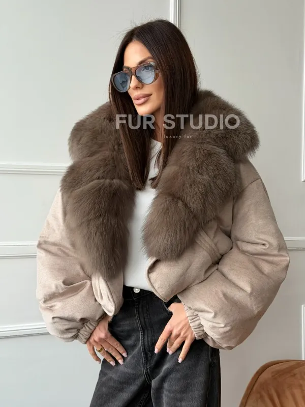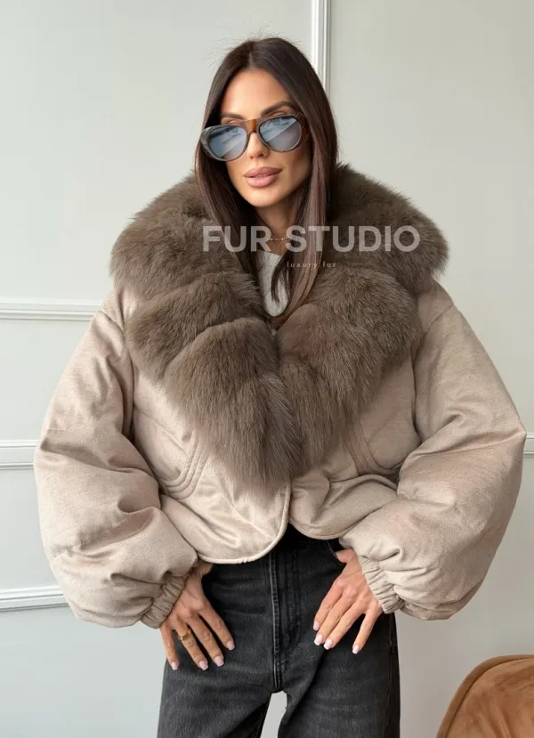 Зимний короткий пуховик с мехом - оверсайз 102748