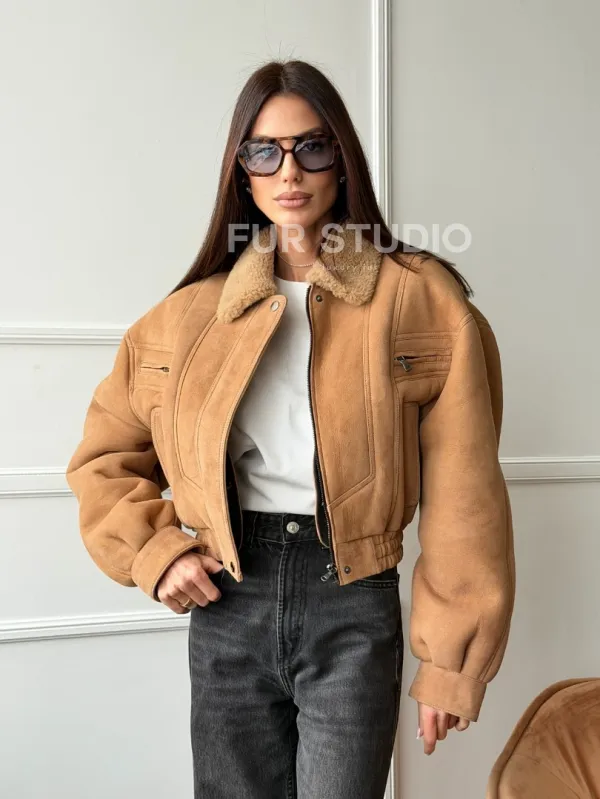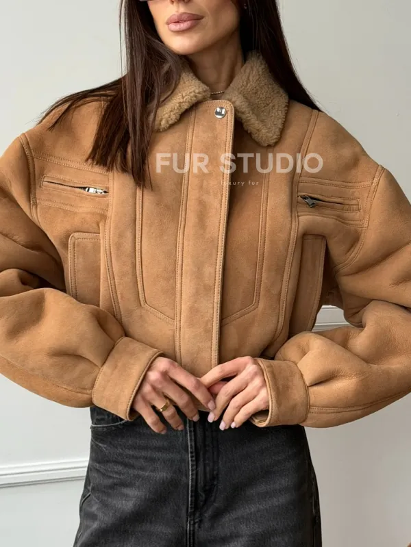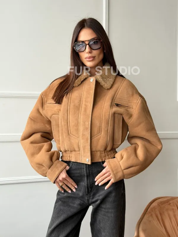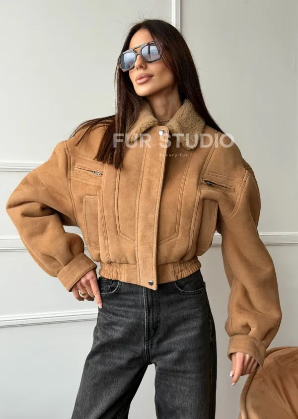 Зимняя женская дубленка - бомбер 102754
